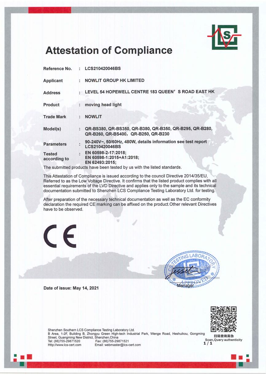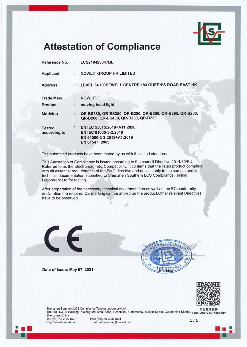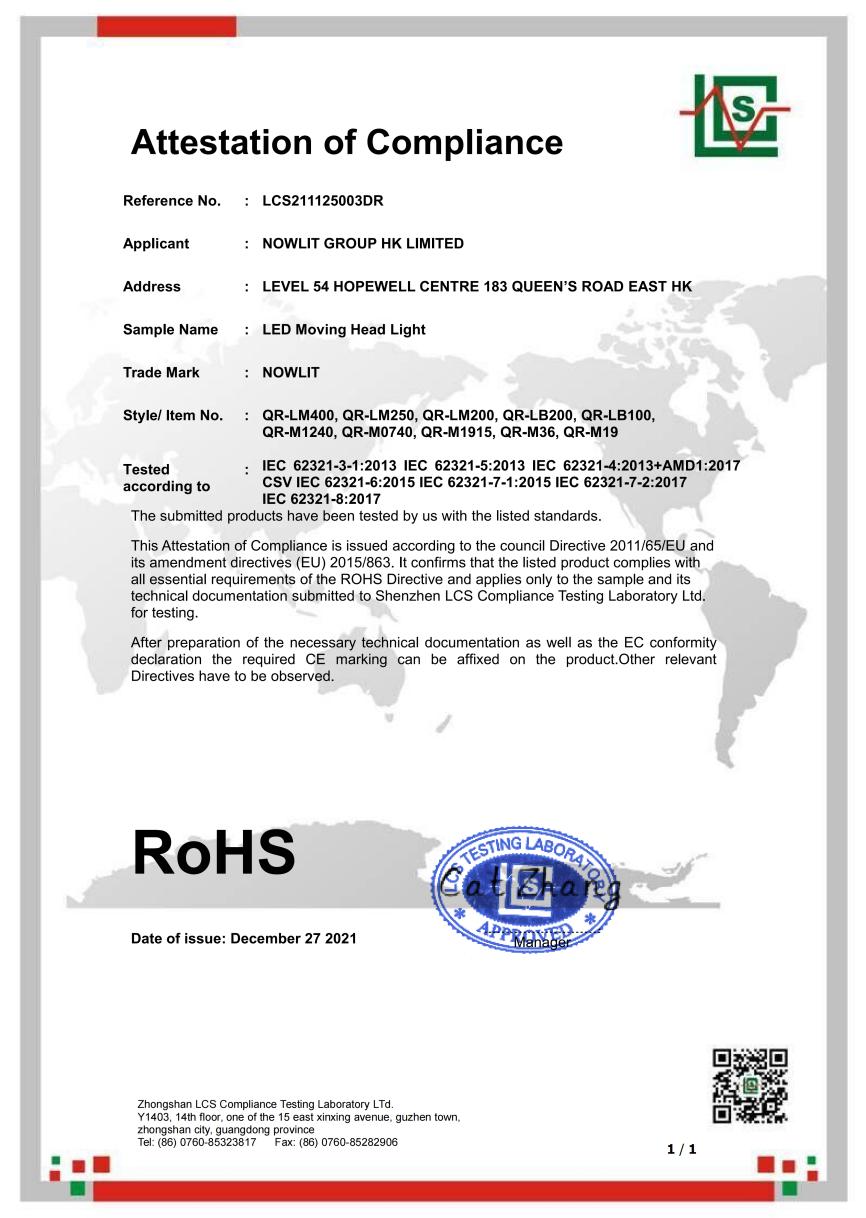 • Utility Model Patent Certificate – Stage Light Rotating Device