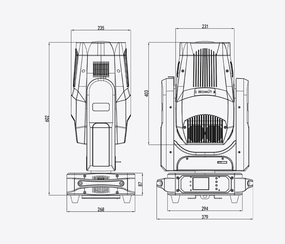 LB500W Beam Moving Head Light features an 8080K over color temperature,paired with a 180mm large-diameter lens and a 2.5°ultra-narrow beam angle optical design.It can project an illuminance of up to 56,200Lux at 10 meters, delivering sharp,concentrated light spots with exceptional focusing performance.
